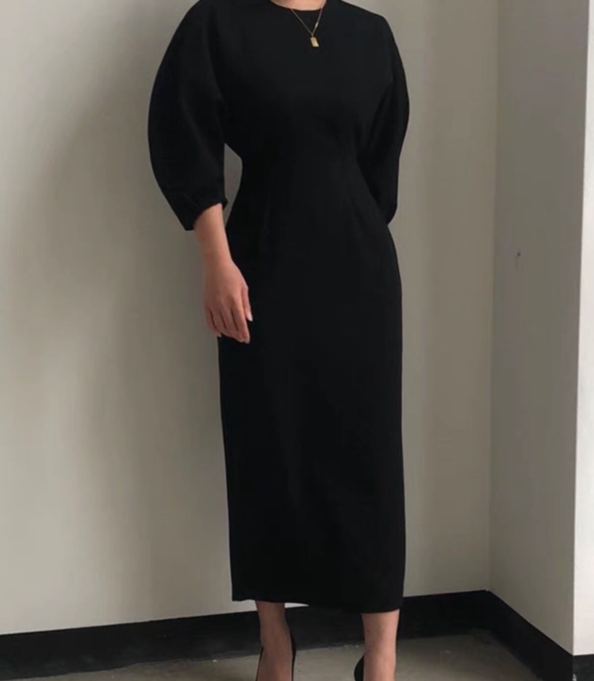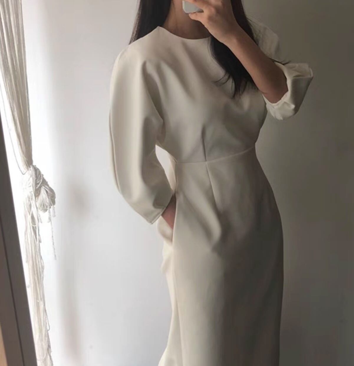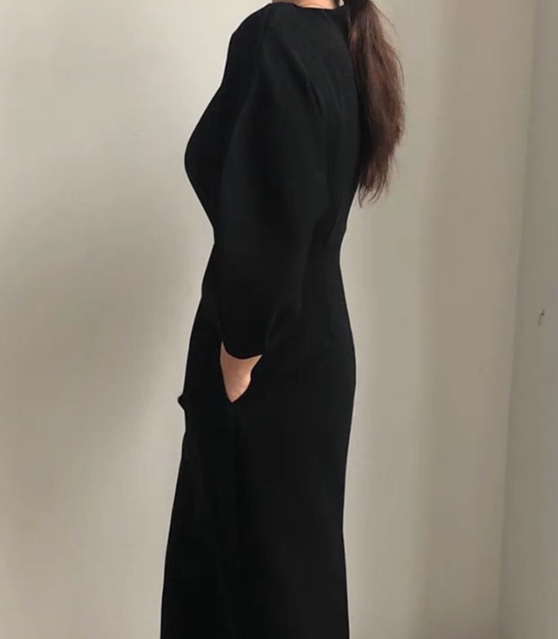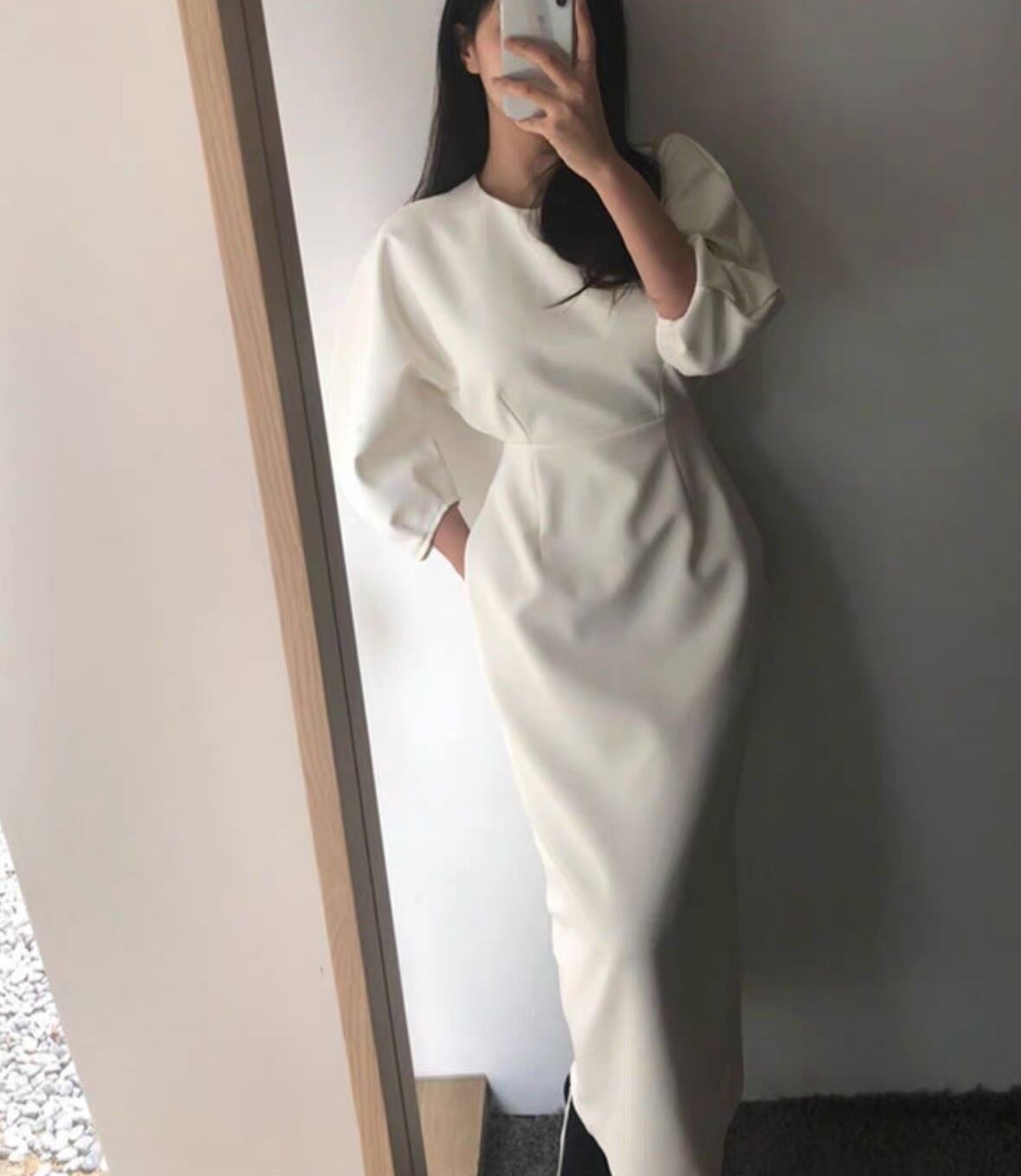 レディース ワンピース ロング 長袖 ボリューム袖 Uネック ラウンドネック タイト スリム 細身 Iライン フェミニン ストリート ウエストマーク ポケット ハイウエスト コンサバ 大人可愛い きれいめ シンプル 上品 おしゃれ かっこいい 個性的 クール モード系 エレガント かっちり ベーシック ロマンティック ナチュラル 無地 春 秋 ショッピング カフェ お揃い 双子 韓国 オルチャン コーデ 普段使い 着回し レイヤード トレンド 流行 インスタ映え S M L 白 ホワイト 黒 ブラック