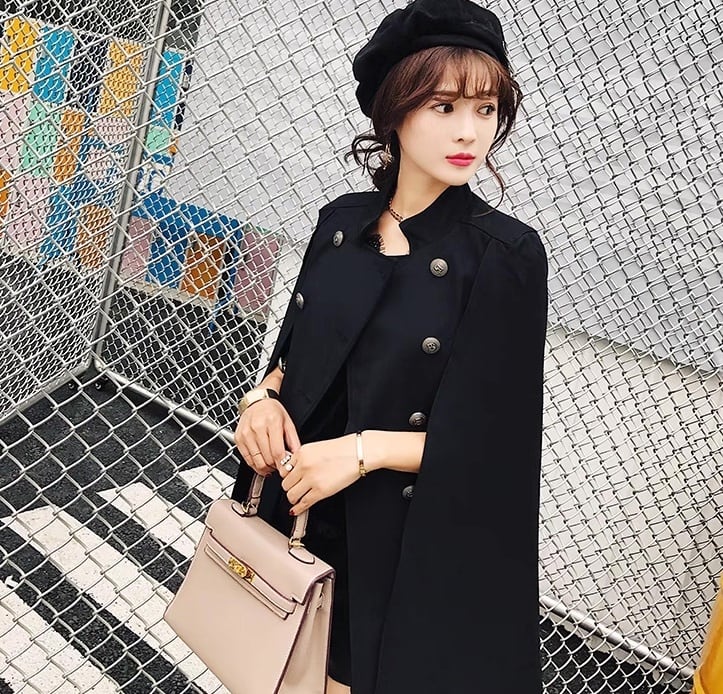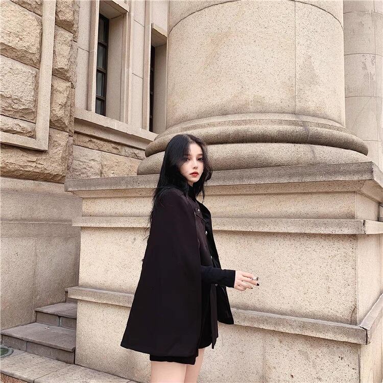 アウター 上着 ケープショール ショート スタンドカラー ケープ襟 フレア Aライン フェミニン かわいい 大人可愛い 上品 おしゃれ かっこいい レトロ こなれ感 個性的 クール モード系 エレガント モダン 存在感 ヴィンテージ ラブリー キュート ゴシック 都会的 ラグジュアリー クラシカル 無地 秋 冬 デート お出かけ パーティー イベント 休日 モノトーン 重ね着 オルチャン コーデ 防寒 着回し レイヤード トレンド 流行 インスタ映え S M L 小さいサイズ 大きいサイズ 黒 ブラック