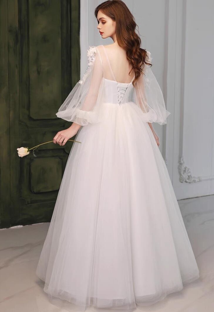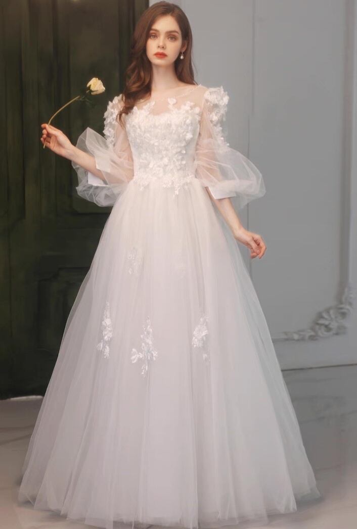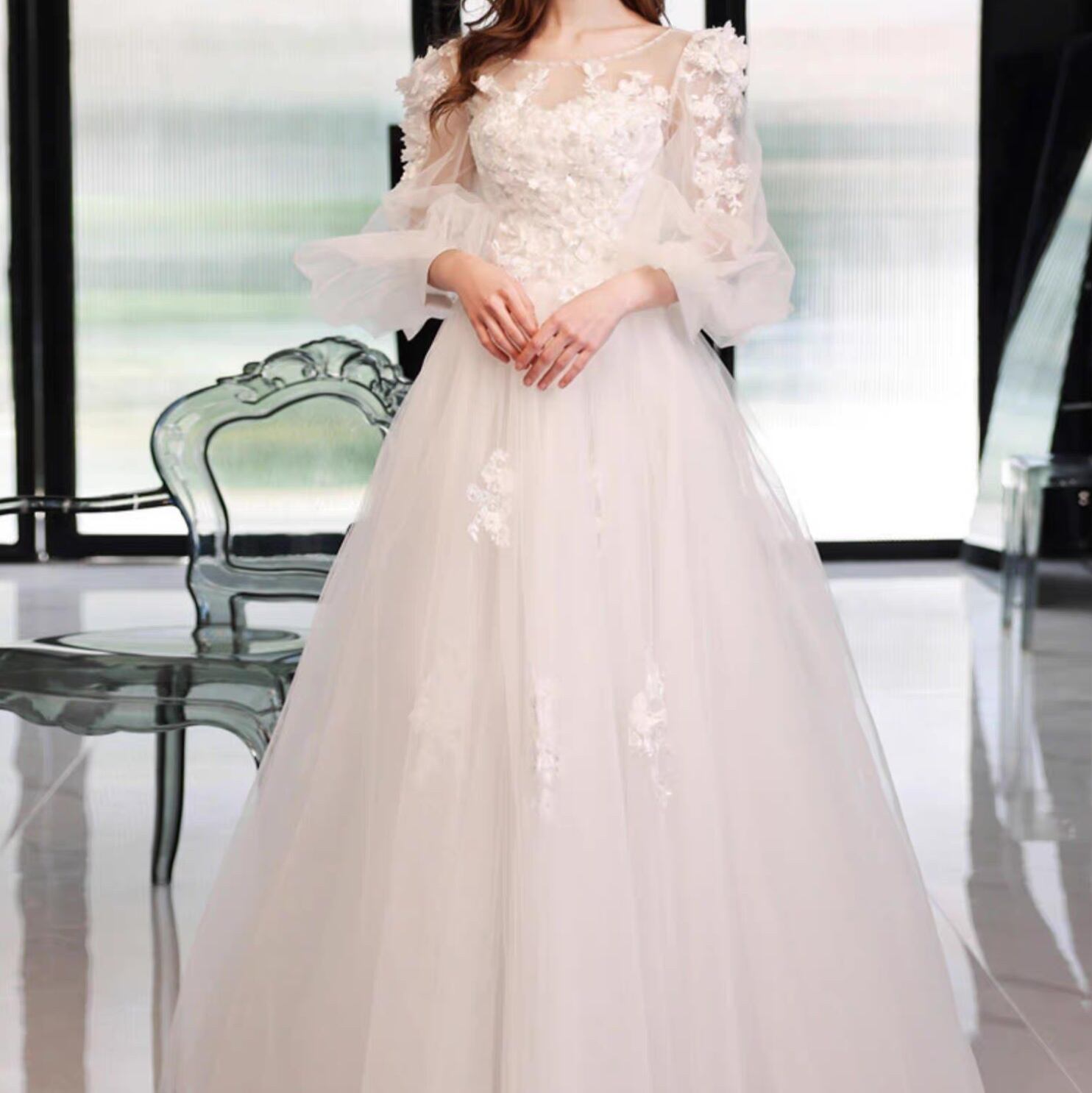 ドレス ワンピース ウェディング パーティー 結婚式 披露宴 マキシ 長袖 バルーンスリーブ Uネック ラウンドネック Aライン ウエストマーク ハイウエスト 透け感 シースルー 上品 おしゃれ かっこいい エレガント モダン 主役級 フォーマル とろみ感 抜け感 ゴージャス エレガント セクシー シック 華やか クラシカル 無地 体型カバー 二の腕カバー 美脚 脚長 高見え 格上げ 春 夏 秋 冬 シーズンレス ウェディング XXS XS 2XL 3XL 小さい 大きい S M L XL 白 ホワイト