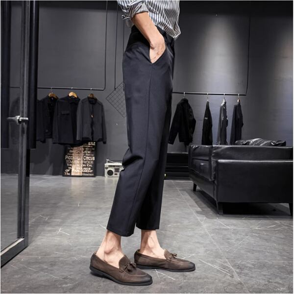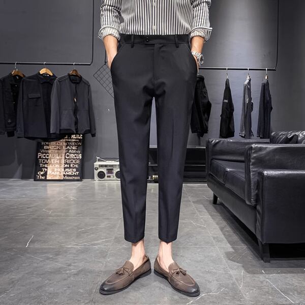 2色展開 メンズ ルーズストレートカジュアルパンツ ビジネスドレープスーツパンツ パンツ ボトムス カジュアルパンツ テーパードパンツ ストレート ローウェスト 伸縮性 シンプル カジュアル 清潔感 オフィスカジュアル 無地 オールシーズン 通勤 通学 ガーデン ショッピング カフェ トレンド ブラック グレー