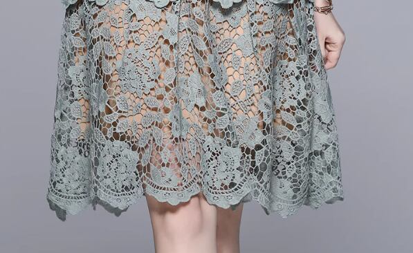 繊細なレースと刺繍が施された上品なデザインは、主役級の存在感を放ちます。ボディラインを美しく引き立てるタイトなシルエットと、Aラインのスカートで女性らしいシルエットを演出。シースルーの袖や透け感が大人可愛い雰囲気を醸し出し、周りの視線を惹きつけること間違いなしです。