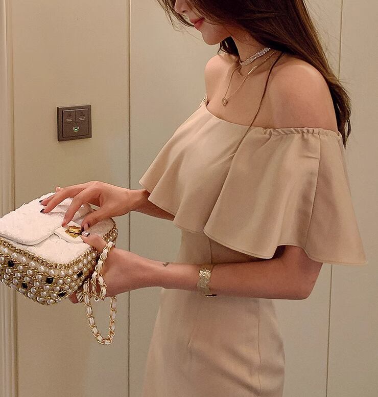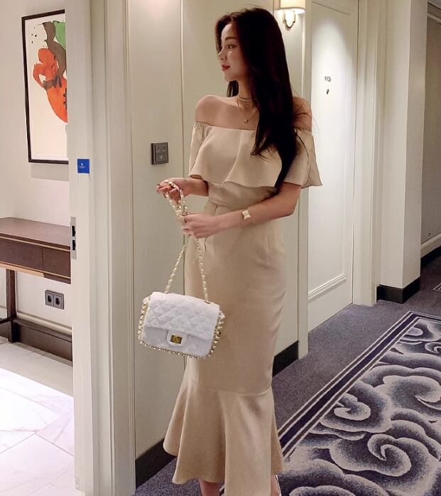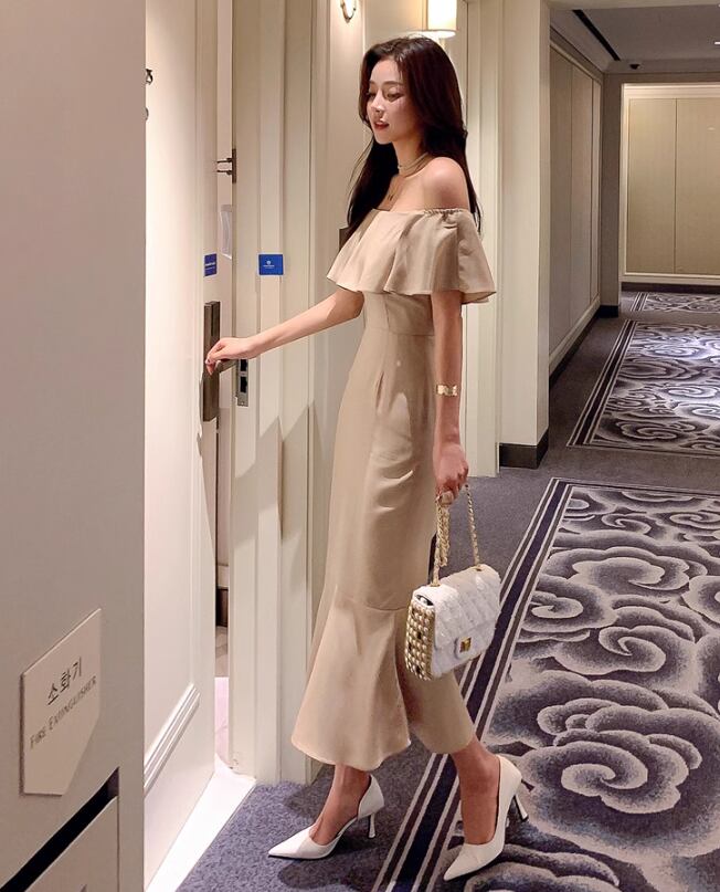 ドレス ウェディング パーティー 結婚式 二次会 披露宴 フォーマル キャバ ラウンジ クラブ ロング 袖なし オフショル 襟なし マーメイド イブニング フリル ファスナー ハイウエスト 可愛い きれいめ シンプル 大人可愛い 上品 おしゃれ 主役級 存在感 フォーマル 清楚 セクシー シック 無地 イベント レストラン 二の腕カバー 美脚 高見え プチプラ 春 夏 秋 S M L XL 春カラー 秋カラー 大人カラー ベージュ