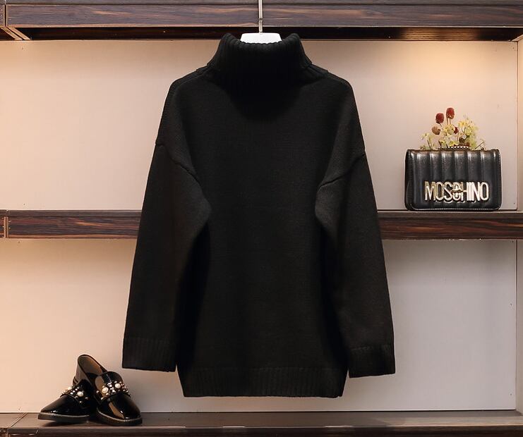 程よいリラックス感のあるタートルネックニットとスカートの上下セットアップ。