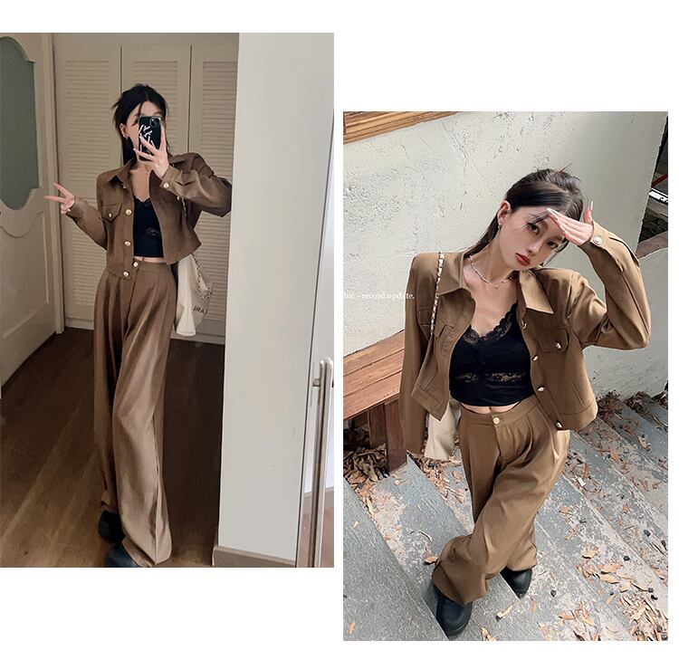 レディース ジャケット パンツ ボトムス 上下セット ロングパンツ ワイドパンツ 長袖 襟付き ワイド ストレート きれいめ シンプル カジュアル おしゃれ かっこいい こなれ感 個性的 クール モード系 モダン 主役級 存在感 都会的 ベーシック ナチュラル 無地 秋 デート お出かけ ショッピング カフェ コーデ 楽ちん 美脚 脚長 普段使い 着回し ロールアップ モテ 清楚 トレンド 流行 インスタ映え 定番 S M L XL ゆったり ブラック カーキ ベーシックカラー 大人カラー 秋カラー