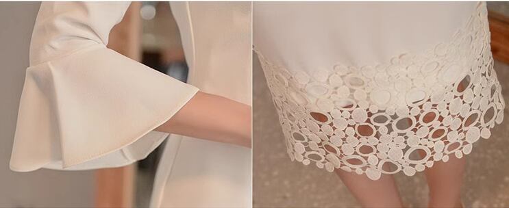 袖口に向かってふわりと広がるベルスリーブと繊細で上品なレースが魅力的な膝丈ドレス。