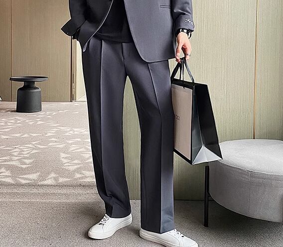 かっちりとしすぎない程よいカジュアル感が魅力的なスーツの上下セット。