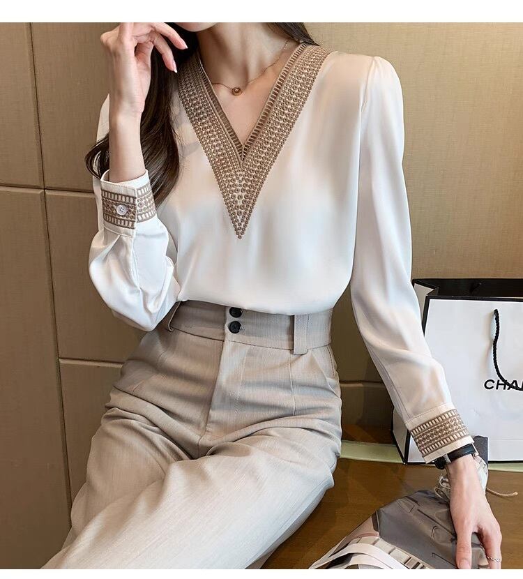 モード系エレガンス×都会的魅力を纏う、レディースシャツ。バルーン袖とVネックのドッキングが抜け感を演出し、フェミニンなレース刺繍が上品なアクセント。オフィスからデートまで、多彩なシーンで活躍。着回し力抜群の上質デザイン。Sから2XLまでのサイズ展開で、あらゆるシルエットに対応。