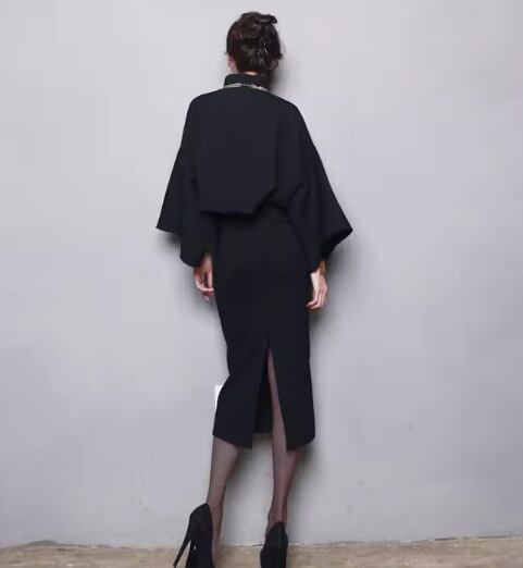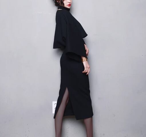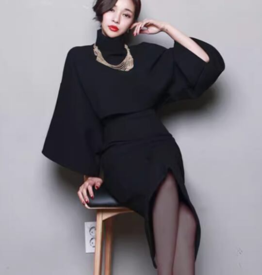 二点セット 上下セット ツーピース レディース スカート トップス セットアップ ミモレ 7分袖 スタンドカラー バックスリット 大人可愛い きれいめ シンプル 上品 おしゃれ かっこいい こなれ感 個性的 クール エレガント ラグジュアリー ハンサム シック 高級感 スタイリッシュ 無地 秋 冬 OL デート お出かけ パーティー イベント 普段使い 着回し S M L XL ブラック グレー ワインレッド