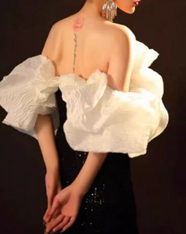 オフショルデザイン×背中開きデザインでセクシーさが演出できるアイテムです。