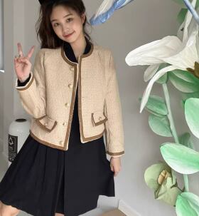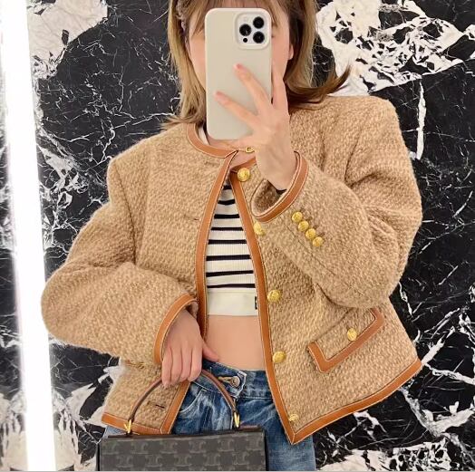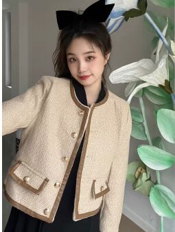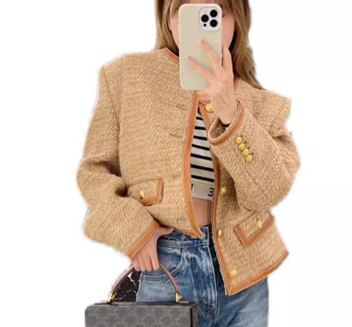 レディース コート ノーカラーコート ショート 長袖 ラウンドネック 異国風 ボタン 厚手 ツイード 大人可愛い きれいめ 上品 おしゃれ レトロ こなれ感 エレガント 存在感 クラシカル セレブリティ 知的 シック 高級感 スタイリッシュ 秋 OL 通勤 デート お出かけ 普段使い 着回し S M L ブラウン 秋カラー 大人デザイン