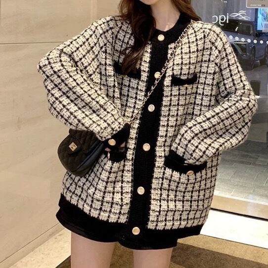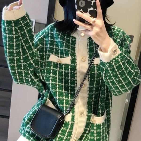 レディース トップス ニット セーター カーディガン 長袖 ラウンドネック フェミニン ポケット ツイード ボタン かわいい 大人可愛い きれいめ カジュアル 上品 おしゃれ レトロ ラフ ガーリー ルーズ エレガント キュート クラシカル チェック 秋 冬 デート お出かけ 女子会 休日 ショッピング 簡単オシャレ 韓国 オルチャン コーデ コーディネート 暖かい 普段使い 着回し モテ スタイル デイリー ゆったり ゆる サイズ フリーサイズ カラー 白 ホワイト 黒 ブラック ピンク 緑 グリーン