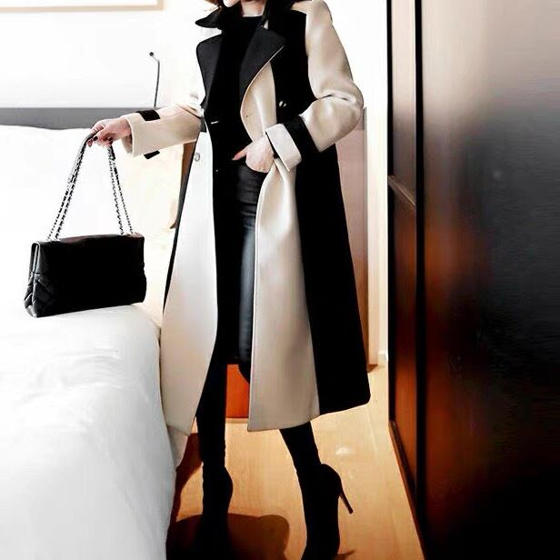 レディース コート アウター 上着 ウール ウールロングコート ロングコート チェスター トレンチ ミモレ ロング 長袖 Vネック 襟付き ベルト 前開き コンサバ ボタン バイカラー 配色 大人可愛い きれいめ シンプル 上品 おしゃれ かっこいい 個性的 クール モード系 エレガント 主役級 存在感 都会的 秋 冬 オフィス OL 通勤 デート お出かけ レストラン 女子会 休日 ホテル ショッピング 韓国 オルチャン コーデ 暖かい 普段使い 着回し スタイル デイリー サイズ S M L XL