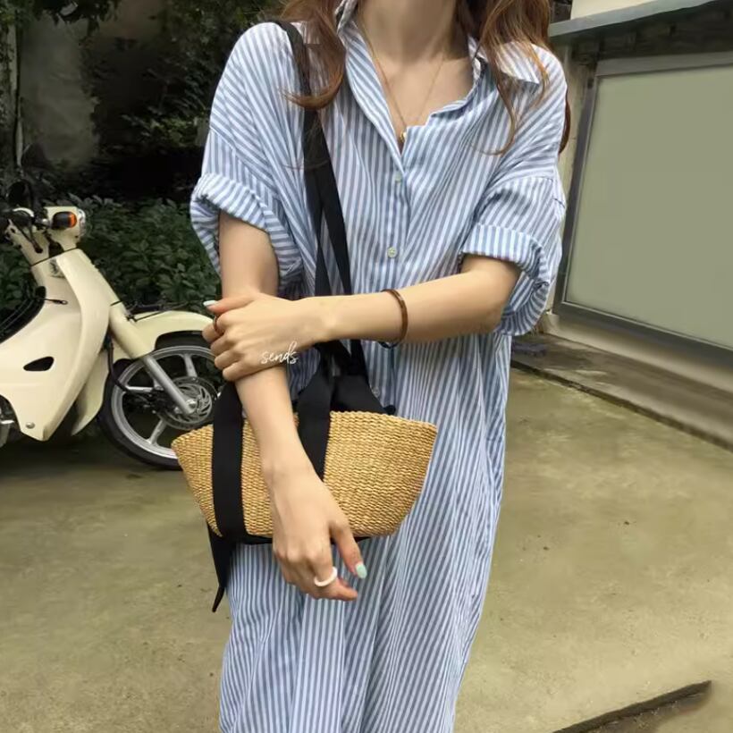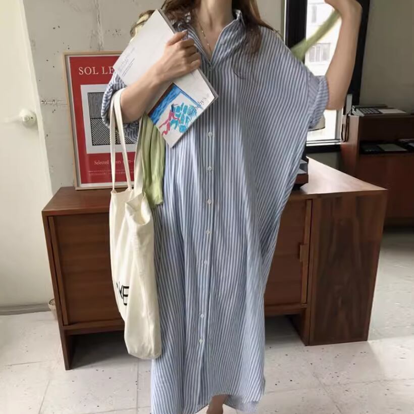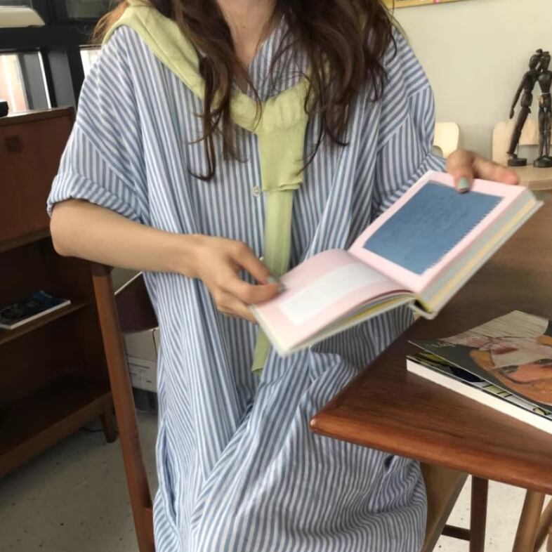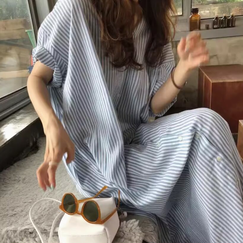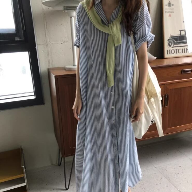レディース スカート ワンピース シャツ ブラウス シャツワンピ 前開き ロング 半袖 襟付き ワイド ストレート ボタン 薄手 かわいい 大人可愛い きれいめ シンプル カジュアル 上品 おしゃれ かっこいい レトロ こなれ感 ラフ 個性的 クール モード系 主役級 存在感 抜け感 都会的 ベーシック アクティブ ナチュラル ストライプ 夏 デート お出かけ アウトドア リゾート ビーチ 女子会 休日 バカンス ショッピング カフェ 重ね着 コーデ 楽ちん 体型カバー 普段使い 定番 ゆったり ゆる