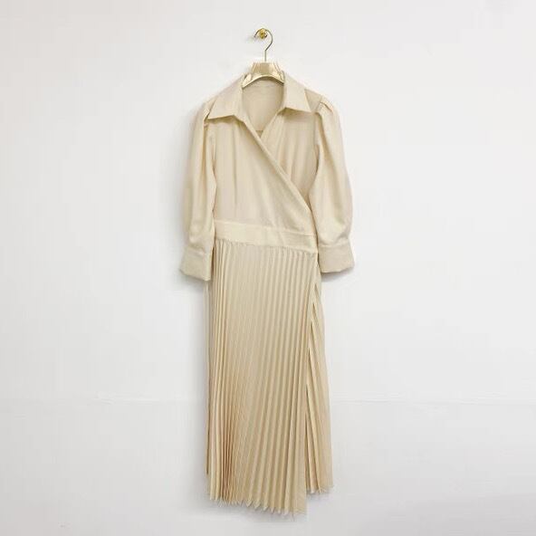 シックでフレンチエレガントなシャツプリーツワンピース。