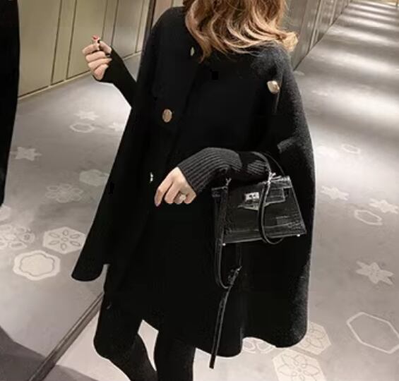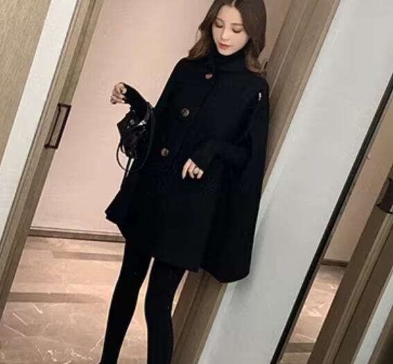 マント風 レディース コート アウター 上着 ウール ケープコート ミドル丈 襟付き ポロカラー 厚手 大人可愛い きれいめ シンプル カジュアル 上品 おしゃれ かっこいい ルーズ 個性的 クール エレガント モダン 存在感 ラグジュアリー ハンサム シック 高級感 芸術的 アーティスティック スタイリッシュ 高貴 無地 秋 冬 デート お出かけ 重ね着 体型カバー 普段使い 着回し レイヤード ゆったり フリーサイズ 大きめ ブラック