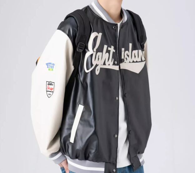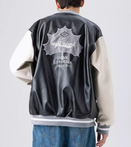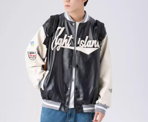 メンズ 男性用 ユニフォーム風 ジャケット アウター 上着 スタジャン ミドル丈 長袖 ベースボールカラー 異国風 アメカジ レザー PU カジュアル おしゃれ かっこいい レトロ ラフ スポーティー ルーズ クール 存在感 アメリカン ワイルド ハンサム シック 高級感 スタイリッシュ 秋 冬 デート お出かけ 普段使い 着回し トレンド 流行 M L XL ゆったり ゆる 大きめ オーバーサイズ ブラック