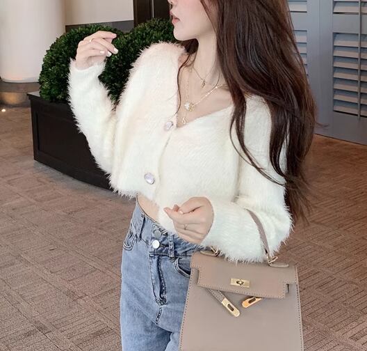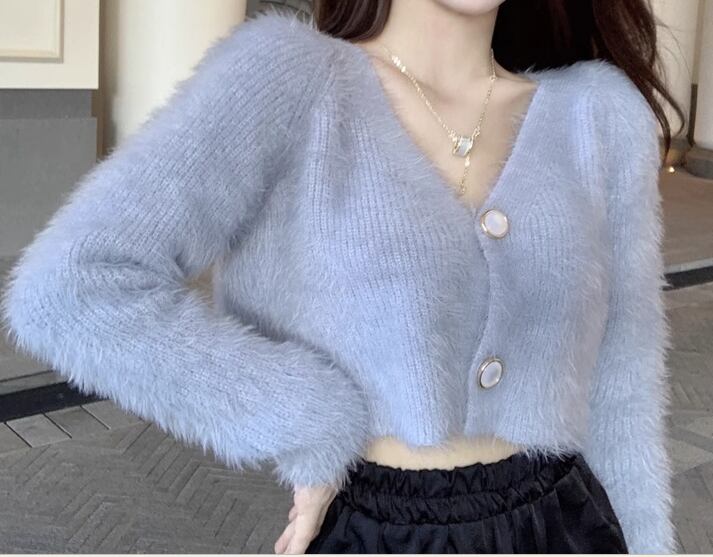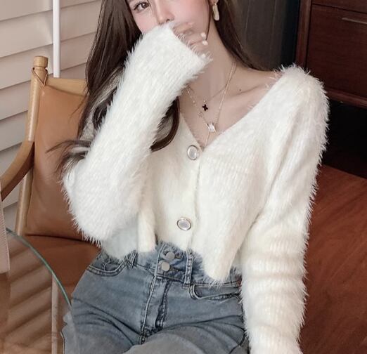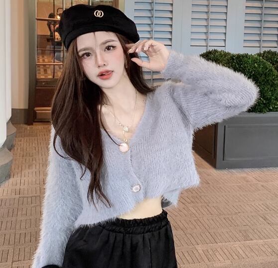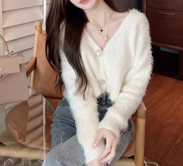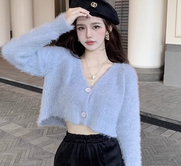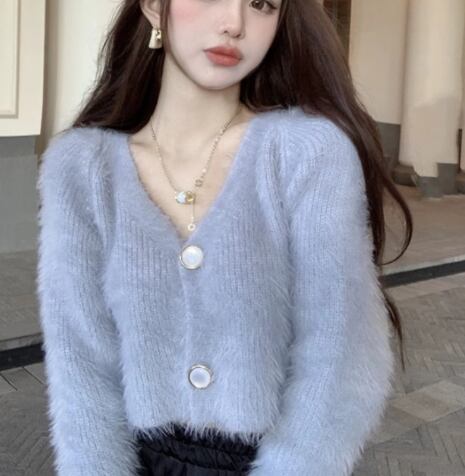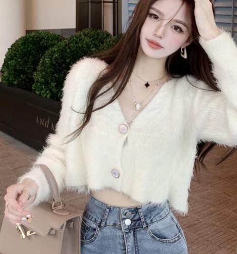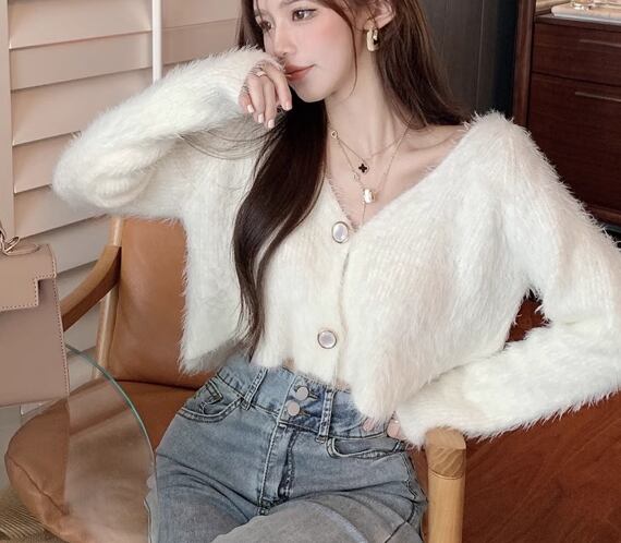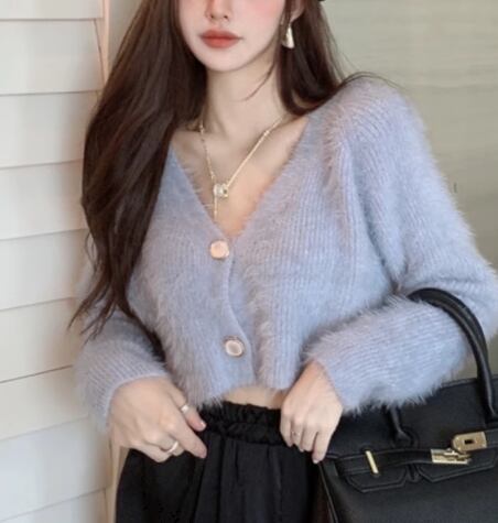 レディース トップス ニット セーター カーディガン ショート 長袖 Vネック 前開き ボタン ベルベット かわいい 大人可愛い きれいめ シンプル カジュアル 上品 おしゃれ ガーリー ルーズ エレガント キュート ナチュラル シック 高級感 無地 春 秋 デート お出かけ 普段使い 着回し モテ トレンド 流行 ゆったり フリーサイズ オフホワイト ブルー