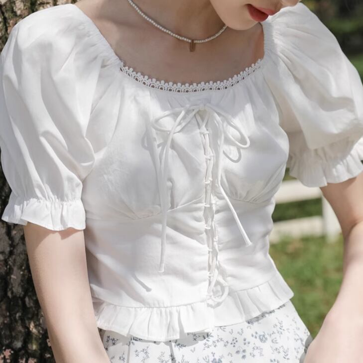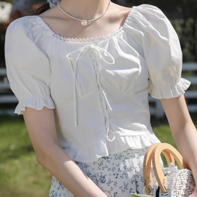 レディース トップス シャツ ブラウス 半袖 パフスリーブ スクエアネック フェミニン シフォン 編み込み 薄手 かわいい 大人可愛い きれいめ シンプル カジュアル 上品 おしゃれ レトロ こなれ感 ラフ ルーズ 個性的 クール モード系 エレガント モダン 主役級 存在感 とろみ感 抜け感 ラブリー キュート ベーシック アクティブ ロマンティック ナチュラル 無地 夏 デート お出かけ パーティー イベント リゾート 休日 バカンス 高原 お花見 コーデ 普段使い 着回し モテ 清楚 ゆる ホワイト