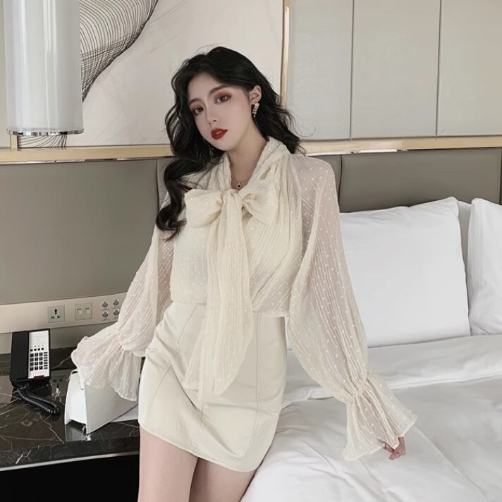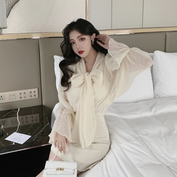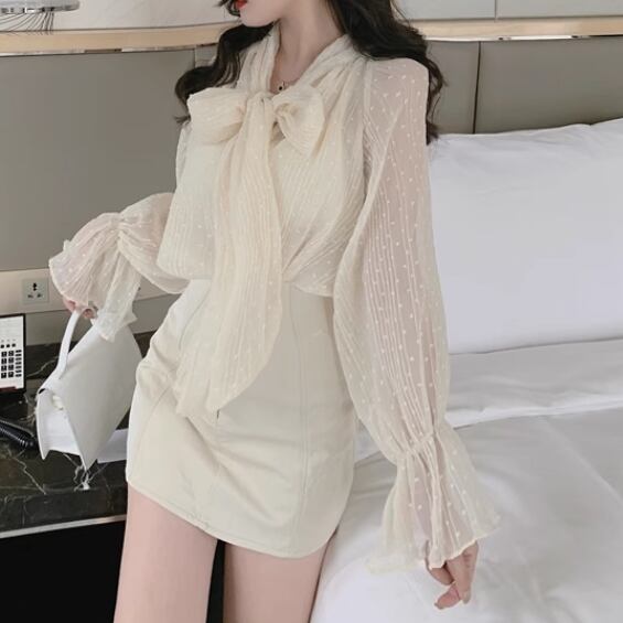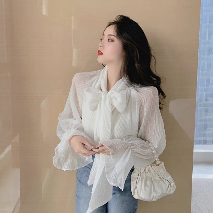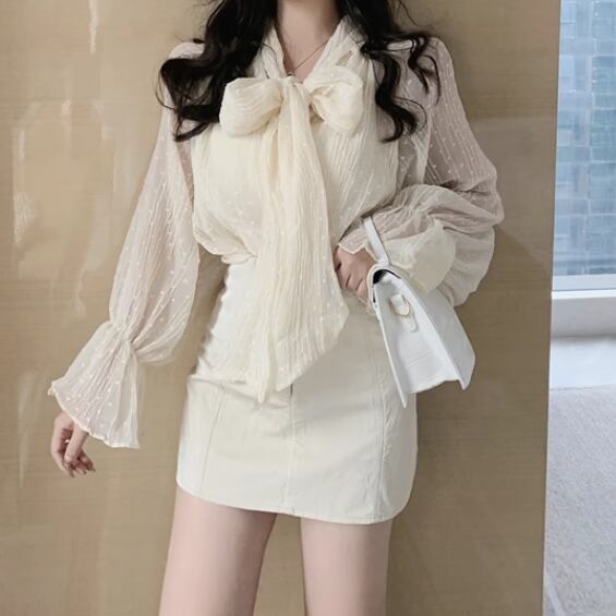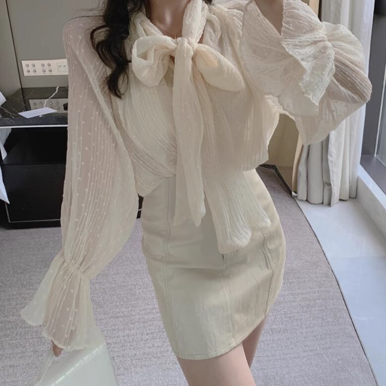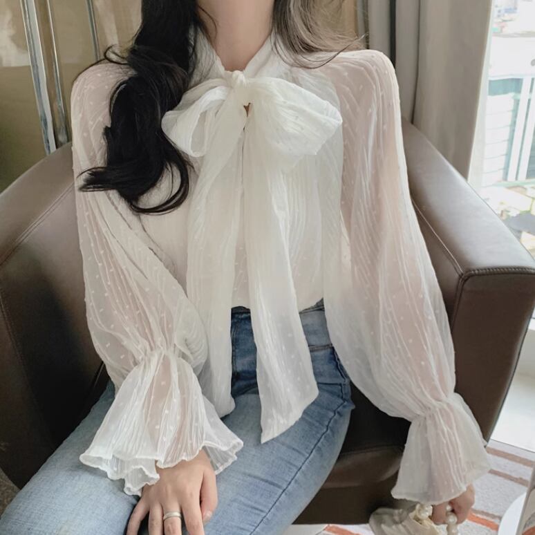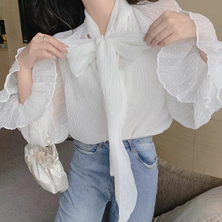 シフォン素材が魅力的なベルスリーブシャツ