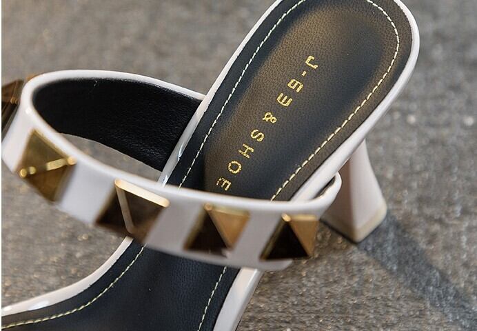 ゴールドのピラミッドスタッズが目を引くミュールサンダル。
