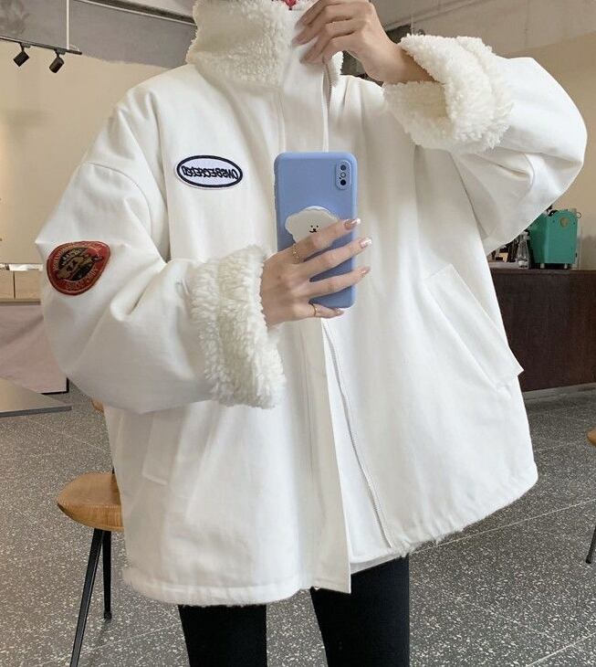 ナイロンとボアで温かく、大きめシルエットで可愛く着こなせます。