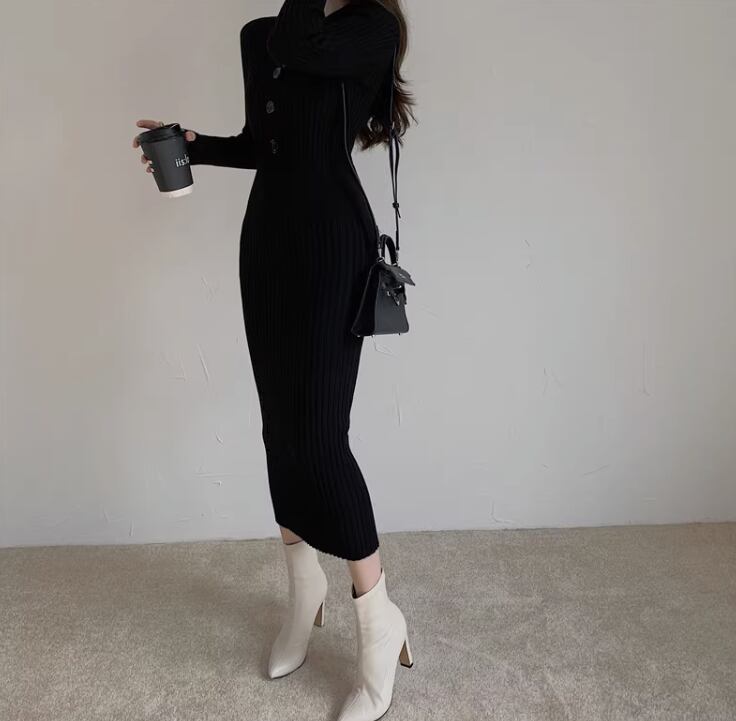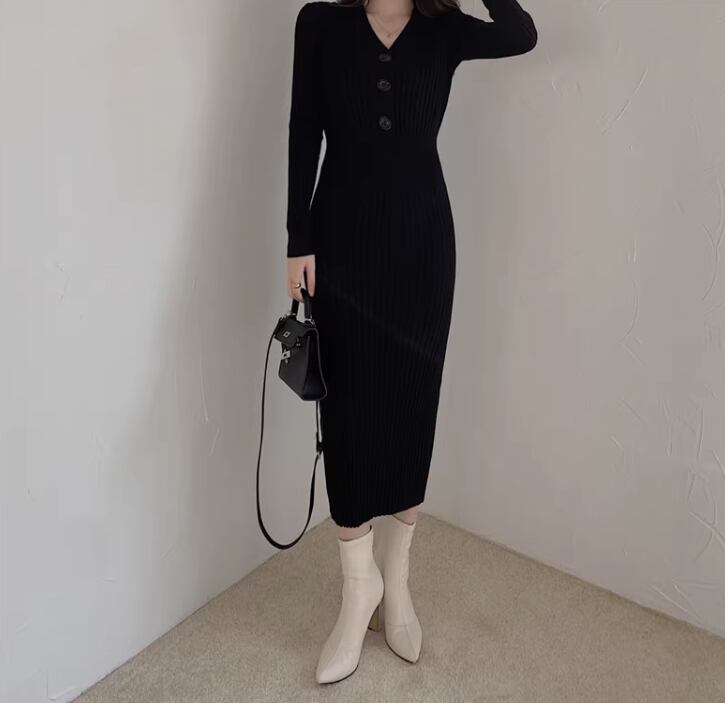 レディース ワンピース ミモレ 長袖 袖あり Vネック 襟なし ストレート Iライン フェミニン ウエストマーク ハイウエスト リブ リブニット ボタン かわいい 大人可愛い きれいめ シンプル 上品 おしゃれ ラフ 主役級 存在感 フォーマル 都会的 無地 春 秋 女性用 通勤 デート お出かけ イベント 旅行 レストラン 公園 女子会 休日 ガーデン ショッピング 合コン コンパ カフェ 楽ちん 脚長 普段使い モテ 清楚 S M L XL 白 ホワイト 黒 ブラック 大人カラー