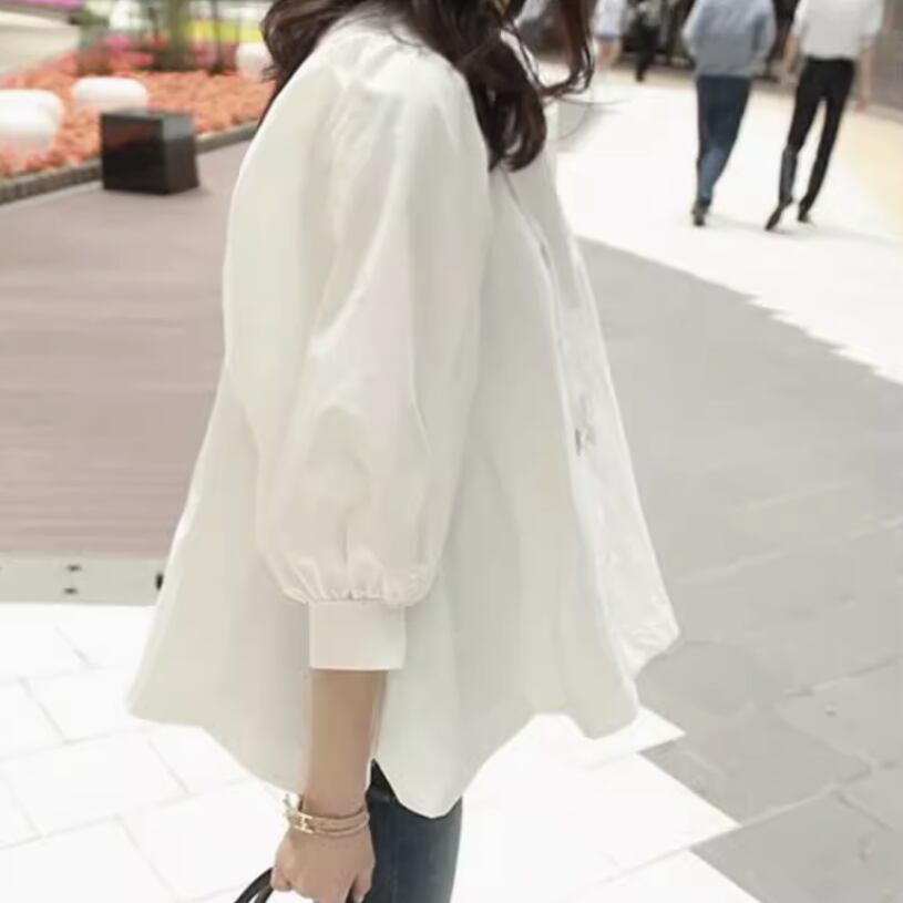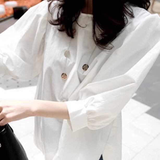 レディース トップス シャツ ブラウス 7分袖 パフスリーブ ラウンドネック 襟なし ノーカラー ワイド 裾ワイド 薄手 かわいい 大人可愛い きれいめ シンプル カジュアル 上品 おしゃれ かっこいい レトロ こなれ感 ラフ ルーズ 個性的 クール エレガント 主役級 存在感 とろみ感 抜け感 ラブリー キュート 都会的 ベーシック アクティブ ロマンティック 無地 春 夏 デート お出かけ 旅行 女子会 休日 ショッピング カフェ コーデ 普段使い モテ S M L XL ゆる ホワイト ブラック