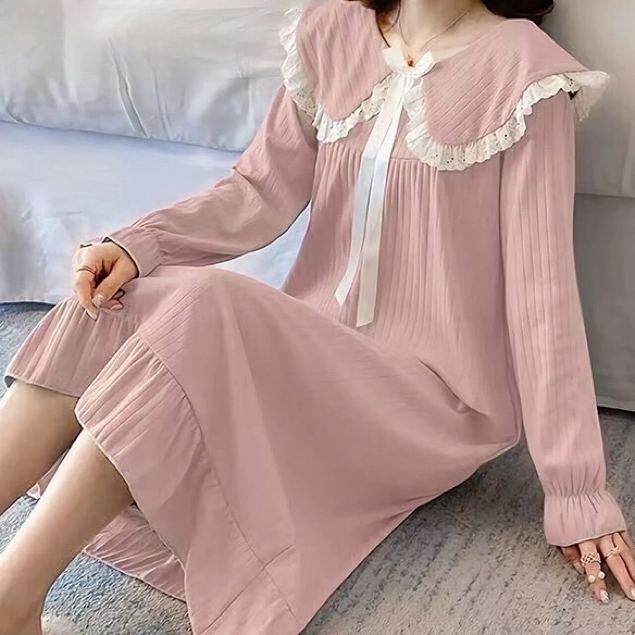 レディース ワンピース マタニティウエア 妊婦服 授乳服 ルームウェア ホームウエア パジャマ 部屋着 ロング 長袖 フリル袖 ラウンドネック 襟付き フェミニン レース リボン リブ かわいい 大人可愛い おしゃれ ラフ ガーリー ルーズ ラブリー キュート プリンセス 春 秋 冬 ママ マタニティ 授乳 妊婦 産後 お泊まり 休日 入院 韓国 オルチャン コーデ コーディネート 楽ちん モテ スタイル デイリー L XL 2XL 3XL 大きいサイズ ゆったり ゆる ライトブルー イエロー ピンク