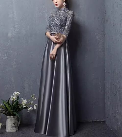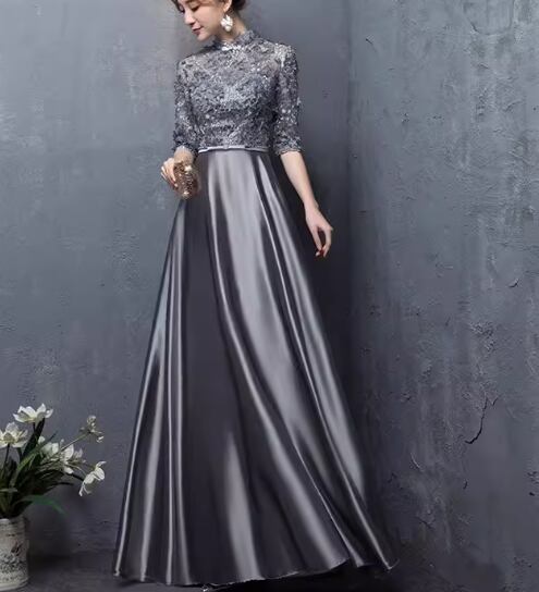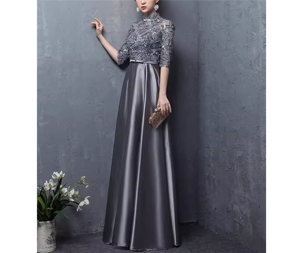 レディース ドレス イブニングドレス パーティードレス カラードレス お色直し ウェディング パーティー 結婚式 二次会 披露宴 演奏会 発表会 ステージ 舞台 衣装 ロング マキシ 5分袖 スリム 細身 切り替えデザイン ドッキング きれいめ 大人可愛い 上品 おしゃれ エレガント 存在感 クラシック 清楚 ゴージャス シック クラシカル 高級感 女性らしい イベント 春 秋 冬 S M L XL 小さめ グレー 大人デザイン 大人カラー