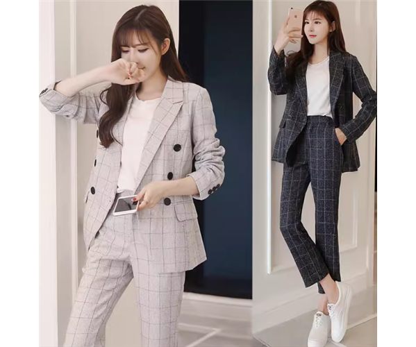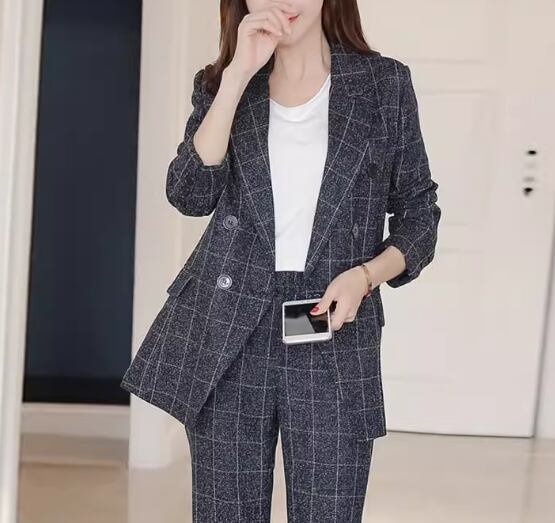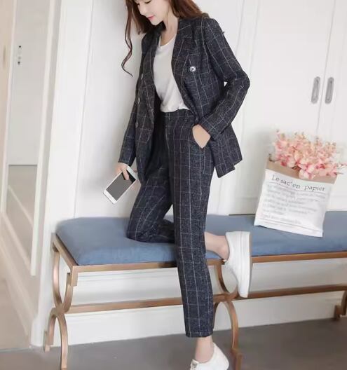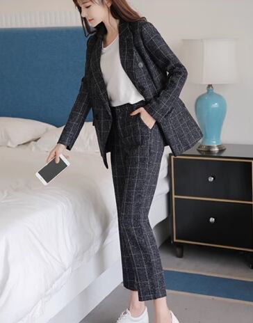 二点セット 上下セット ツーピース レディース ジャケット パンツ スーツ セットアップ ウール 9分丈 アンクル丈 長袖 襟付き タイト スリム 細身 ポケット 異国風 ボタン 大人可愛い きれいめ シンプル カジュアル 上品 おしゃれ かっこいい こなれ感 クール エレガント クラシカル 知的 清潔感 ハンサム シック 高級感 オフィスカジュアル スタイリッシュ チェック 秋 冬 オフィス ビジネス OL 通勤 韓国 普段使い 着回し S M L XL 小さめ グレー ネイビー