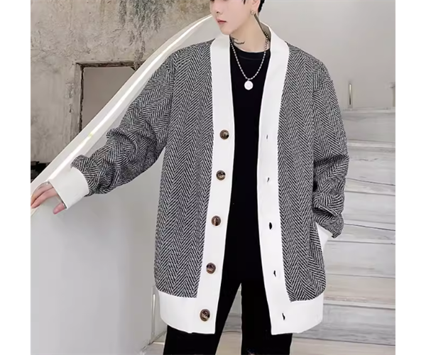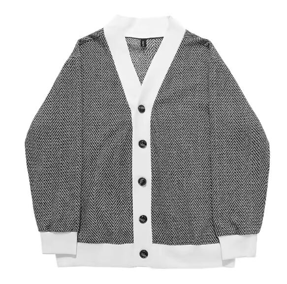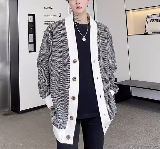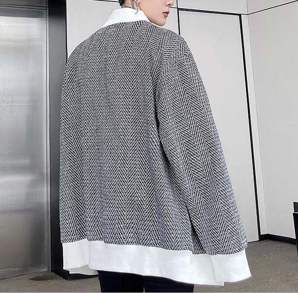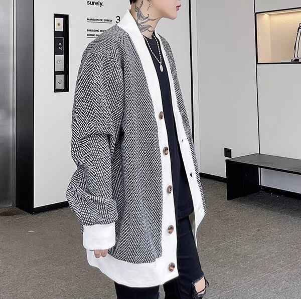 メンズ 男性用 ジャケット カーディガン アウター 上着 羽織 ミドル丈 長袖 ノーカラー かわいい 大人可愛い シンプル カジュアル 上品 おしゃれ かっこいい ルーズ クール エレガント 存在感 ナチュラル 知的 清潔感 爽やか ハンサム シック 高級感 スタイリッシュ ランダムストライプ 秋 10代 20代 学生 デート お出かけ 普段使い 着回し モテ トレンド 流行 M L XL ゆったり ゆる 大きめ オーバーサイズ ブラック