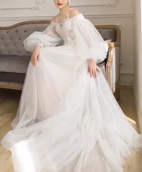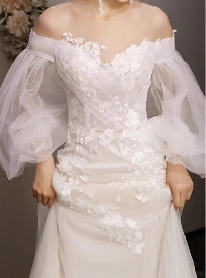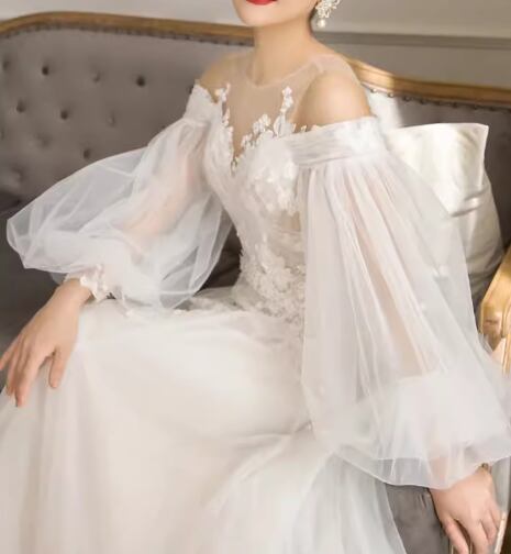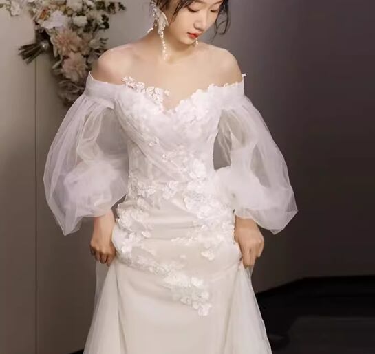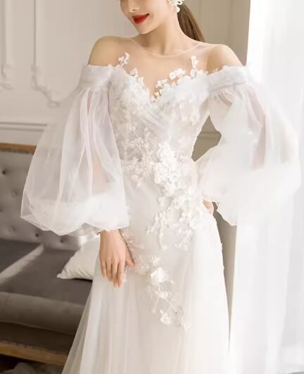 レディース ドレス ウエディングドレス ウェルカムドレス ウェディング パーティー 結婚式 二次会 披露宴 ロング マキシ 長袖 ボリューム オフショル スリム 細身 透け感 背中開き 可愛い きれいめ シンプル 大人可愛い 上品 おしゃれ ガーリー エレガント 主役級 存在感 クラシック 清楚 ゴージャス セクシー シック 華やか 高級感 フェミニン 女性らしい フェアリー 花 フラワー 春 ブライダル 花嫁 新婦 S M L XL 小さめ ホワイト