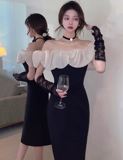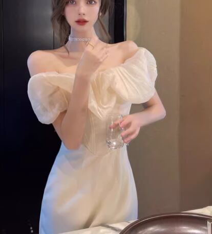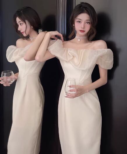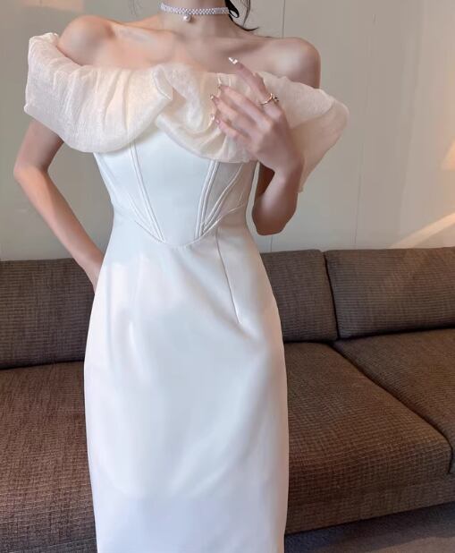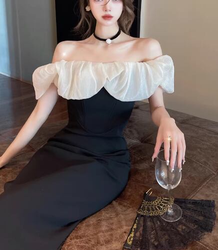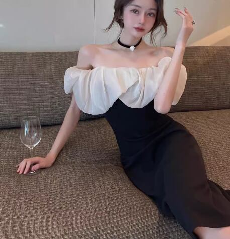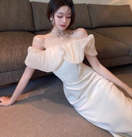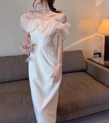 レディース ドレス パーティードレス ロング 半袖 オフショル Aライン ファスナー ハイウエスト 背中開き きれいめ シンプル 大人可愛い おしゃれ エレガント 存在感 セクシー シック 華やか ラグジュアリー 高級感 セレブリティ 無地 イベント レストラン デート 食事会 会食 夏 パーティー キャバ S M L ブラック 大人デザイン オフホワイト