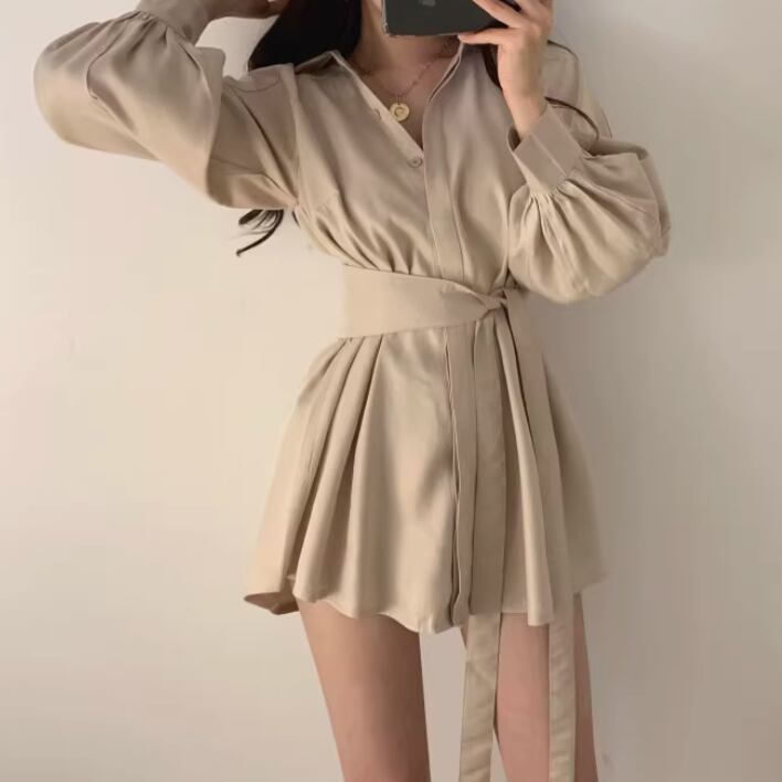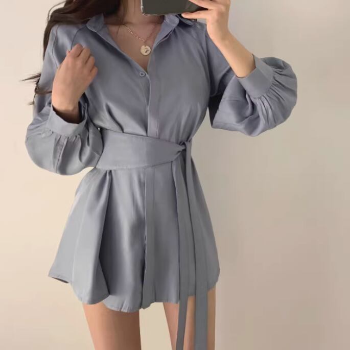 2点セット ツーピース トップス パンツ ボトムス シャツ ブラウス セットアップ ショートパンツ ミニ ショート 膝上 長袖 襟付き リボン ウエストマーク ウエストリボン ボタン 薄手 かわいい 大人可愛い きれいめ シンプル カジュアル 上品 おしゃれ かっこいい レトロ こなれ感 ラフ ルーズ 個性的 クール モード系 エレガント 主役級 存在感 とろみ感 抜け感 ラブリー キュート 都会的 ベーシック アクティブ ナチュラル 無地 春 夏 デート リゾート 休日 コーデ 美脚 脚長 モテ ゆる