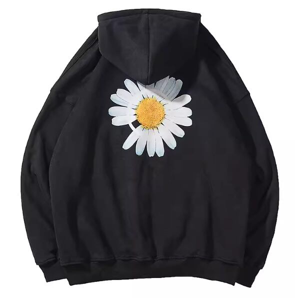 大きくプリントされたデイジーが可愛くておしゃれな長袖のプルオーバーパーカー。