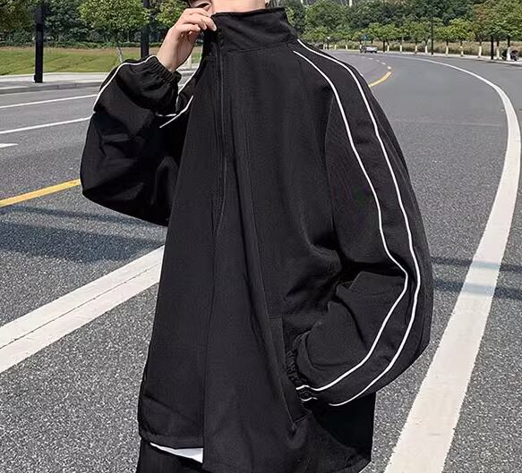 メンズ 男性用 二点セット 上下セット ツーピース スウェット ジャージ セットアップ スポーツウェア フルレングス 長袖 前開き ファスナー シンプル カジュアル おしゃれ かっこいい スポーティー ルーズ クール 爽やか ハンサム シック スタイリッシュ 秋 冬 スポーツ ダンス 普段使い 着回し 動きやすい M L XL ゆったり ゆる 大きめ ブラック