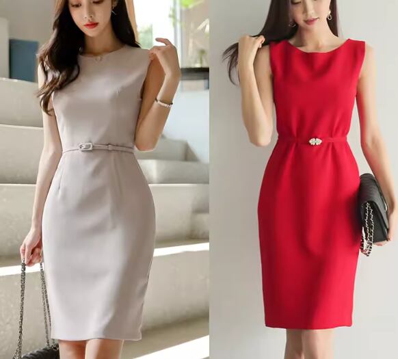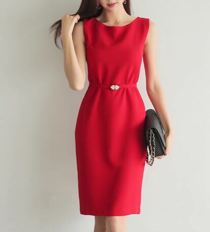 レディース ドレス ミドル丈 袖なし ノースリーブ ラウンドネック タイト スリム 細身 ベルト ウエストマーク ファスナー 大人可愛い きれいめ シンプル 上品 おしゃれ こなれ感 クール エレガント ラグジュアリー ナチュラル セクシー シック 高級感 無地 夏 OL デート お出かけ パーティー イベント 韓国 普段使い モテ S M L XL 小さめ レッド アプリコット