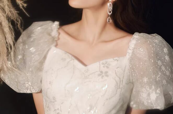 スパンコールとパフスリーブのデザインが可愛らしい、イブニングドレスが登場!!