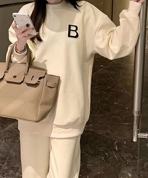 二点セット 上下セット レディース パンツ トレーナー セットアップ 長袖 ラウンドネック ストリート ポケット ウエストゴム 伸縮性 かわいい シンプル カジュアル ラフ スポーティー ルーズ ナチュラル リラックス 英語 ワンポイント ロングシーズン 男女兼用 ユニセックス アウトドア ジム 休日 スポーツ 楽ちん 体型カバー 普段使い 動きやすい M L XL 2XL ゆったり ゆる オーバーサイズ アプリコット