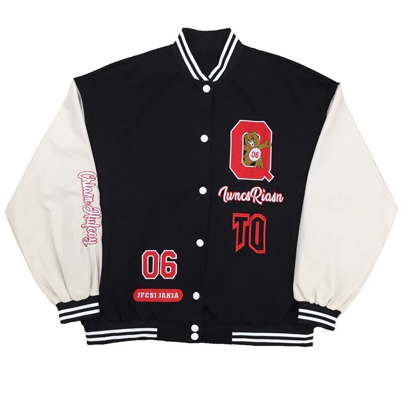 メンズ ユニフォーム風 男女兼用 ユニセックス ジャケット カジュアルジャケット ミドル丈 長袖 ボリューム袖 ベースボールカラー ストリート 刺繍 ふっくら ボタン ステッチ 綿 かわいい カジュアル ラフ スポーティー 個性的 存在感 アメリカン キャラクター ステッチ ロゴ 文字 英語 数字 春 秋 冬 男女兼用 ユニセックス 学生 お出かけ アウトドア ジム 休日 スポーツ お揃い 楽ちん 暖かい 体型カバー M L XL 2XL ゆったり ブラック ブルー