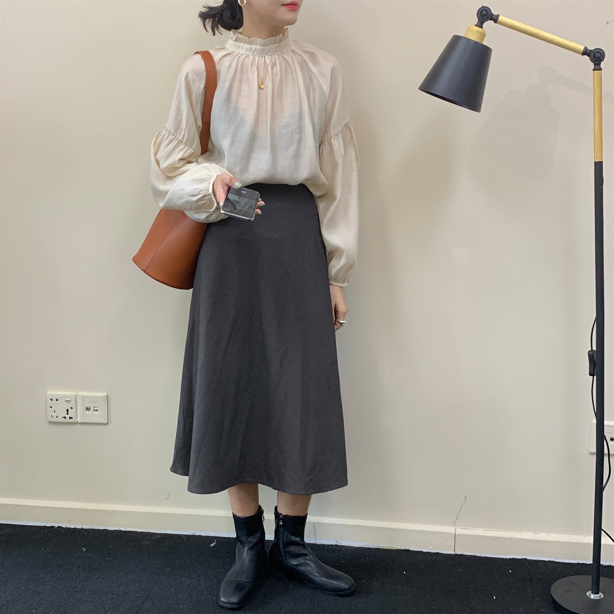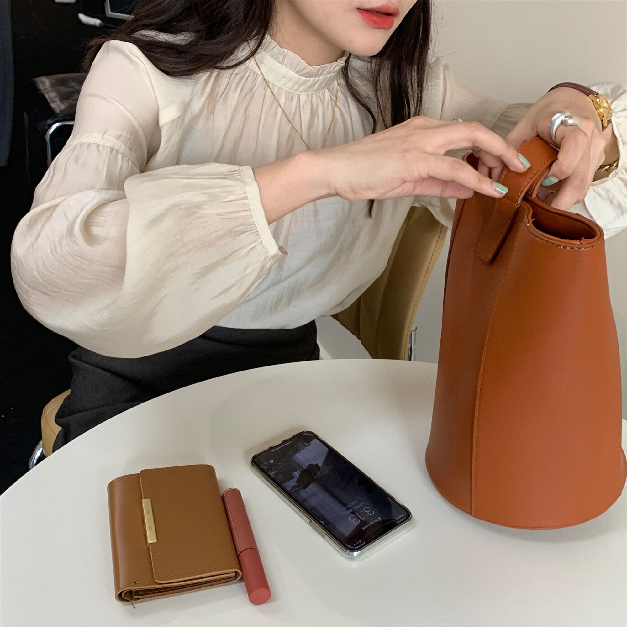 レディース トップス ブラウス プルオーバー 長袖 パフスリーブ ドロップショルダー ハイネック スタンドカラー ワイド フェミニン タック フリル 透け感 ボタン かわいい 大人可愛い きれいめ シンプル カジュアル 上品 おしゃれ ガーリー 主役級 存在感 抜け感 ラブリー ロマンティック ナチュラル 無地 春 デート お出かけ リゾート 旅行 レストラン 女子会 休日 合コン コンパ カフェ 婚活 韓国 オルチャン コーデ 体型カバー 普段使い 着回し モテ 清楚 S M L ゆったり アプリコット