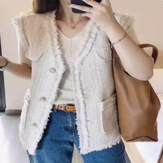 上品で女性らしいツイード素材のレディースベストが登場。