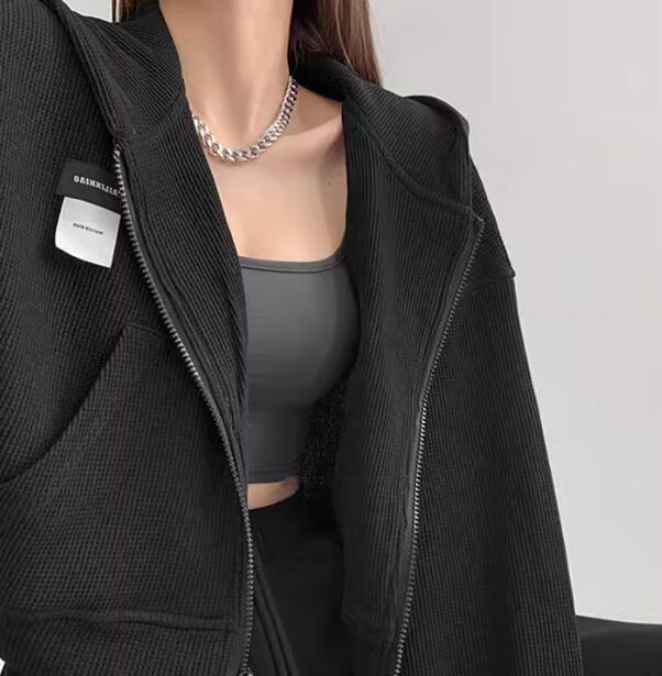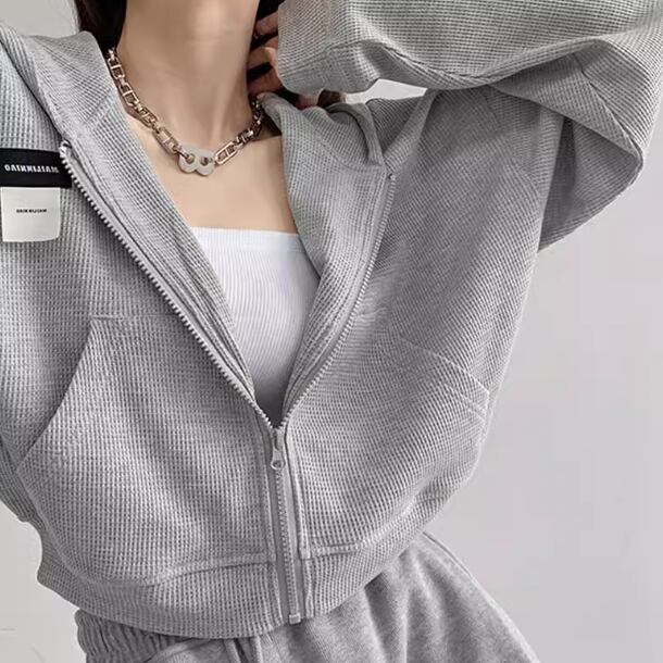 トレンドのクロップド丈がおしゃれな長袖のジップアップパーカー。