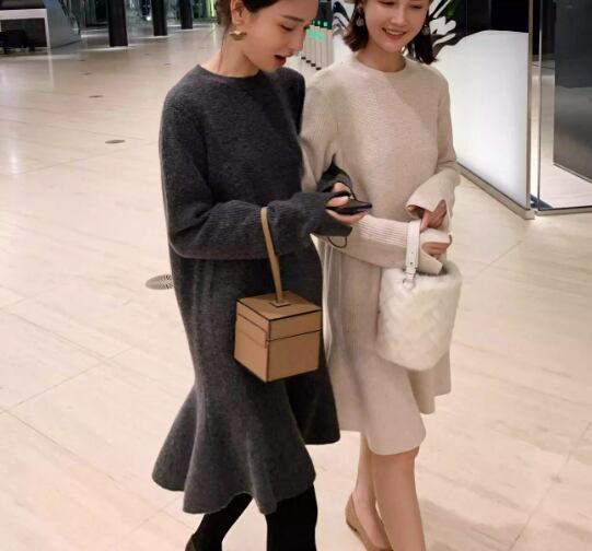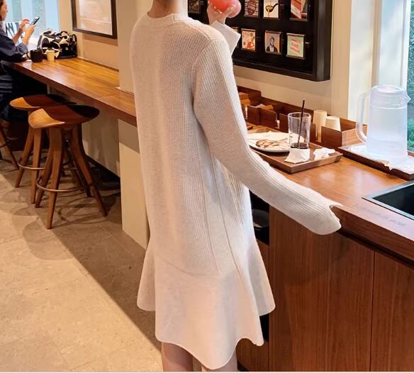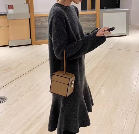 落ち着いた秋カラーが魅力的な大人可愛いニットワンピース。
