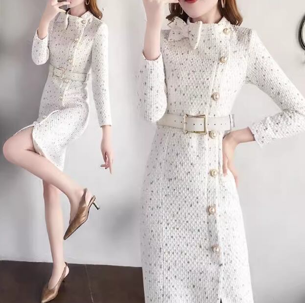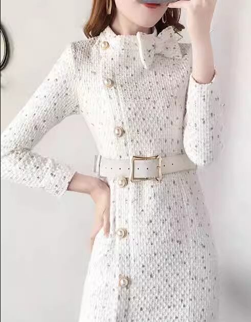 レディース プルオーバー ドレス ウール 膝丈 ミドル丈 ショート 長袖 スタンドカラー ウエストマーク ベルト フェミニン リボン ハイウエスト 異国風 厚手 かわいい 大人可愛い きれいめ シンプル 上品 おしゃれ レトロ ガーリー 個性的 エレガント キュート クラシカル ナチュラル シック 高級感 優しい 穏やか 秋 冬 OL デート お出かけ パーティー イベント 普段使い S M L XL オフホワイト