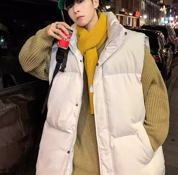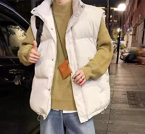 厚手でとても暖かい、秋冬の寒い季節に欠かせないノースリーブのダウンベスト。