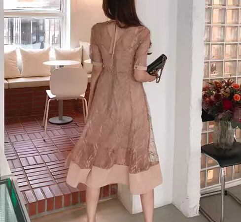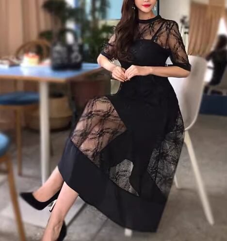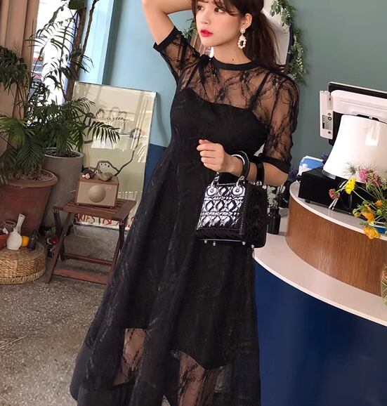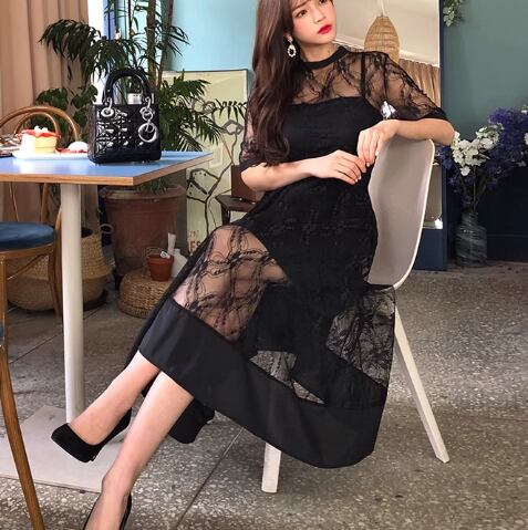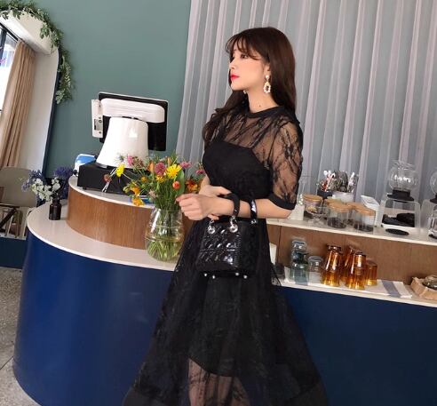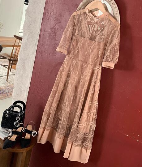 二点セット ツーピース レディース ドレス ロング 半袖 ラウンドネック スリム 細身 フェミニン レース シフォン ハイウエスト メッシュ かわいい 大人可愛い きれいめ 上品 おしゃれ ガーリー エレガント 存在感 キュート ラグジュアリー クラシカル シック 高級感 芸術的 アーティスティック 華やか スタイリッシュ 夏 デート お出かけ パーティー イベント モテ 清楚 S M L XL 小さめ ブラック ピンク