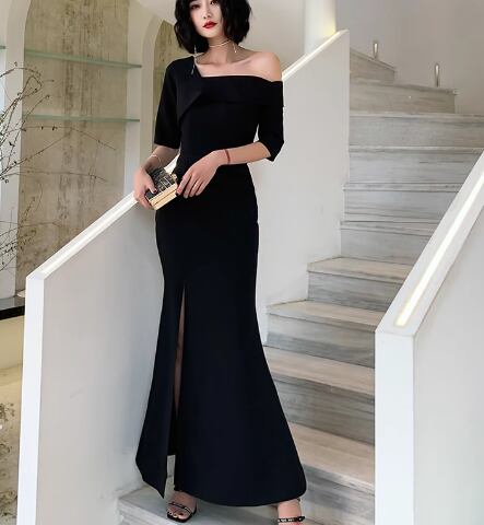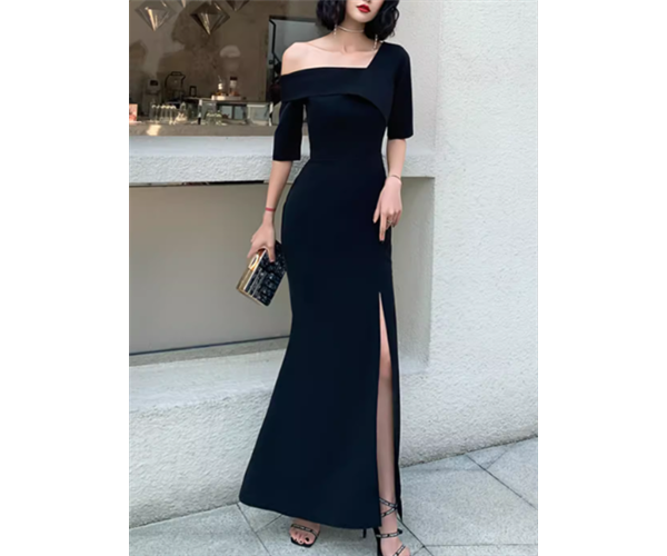 レディース ドレス イブニングドレス パーティードレス ロング マキシ 半袖 ワンショルダー スリム 細身 フィッシュテール スリット ファスナー 大人可愛い きれいめ シンプル 上品 おしゃれ かっこいい こなれ感 クール エレガント 抜け感 ラグジュアリー セレブリティ セクシー シック 高級感 スタイリッシュ 高貴 無地 春 夏 パーティー イベント S M L XL 小さめ ブラック レッド 大人デザイン