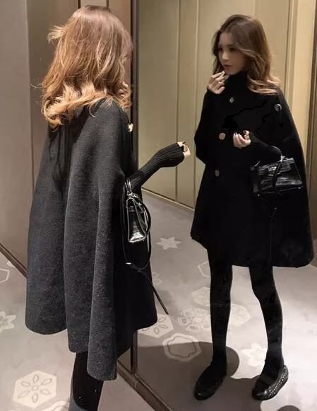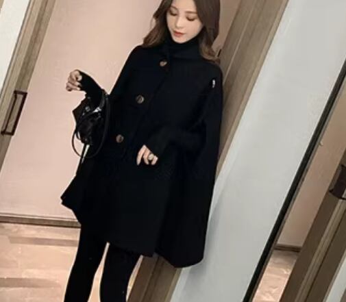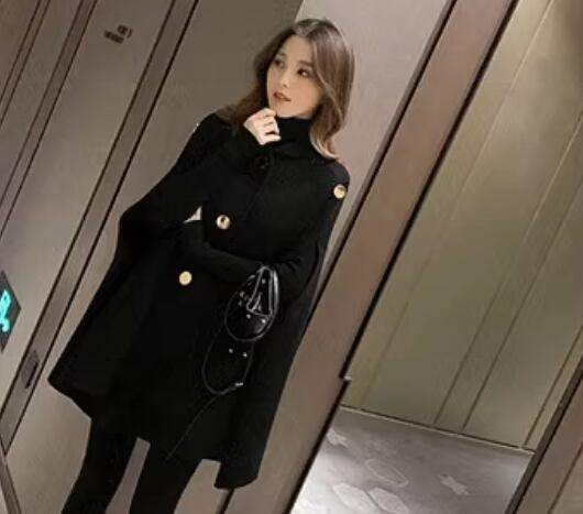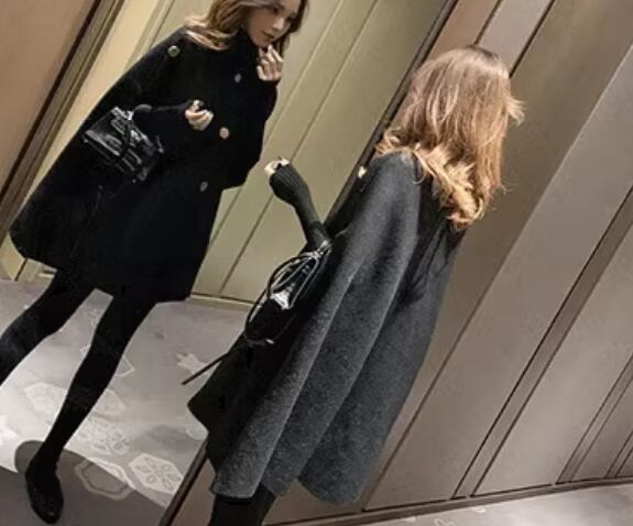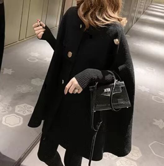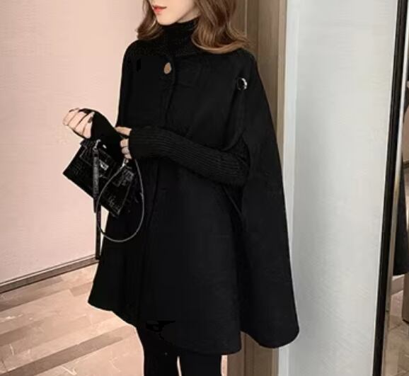 マントタイプ レディース コート ウール ケープコート ミドル丈 ボタン 厚手 大人可愛い きれいめ シンプル カジュアル 上品 おしゃれ かっこいい レトロ こなれ感 ボーイッシュ ルーズ クール エレガント クラシカル ナチュラル セレブリティ シック 高級感 スタイリッシュ 無地 秋 冬 デート お出かけ 体型カバー 普段使い 着回し ゆったり フリーサイズ 大きめ ブラック