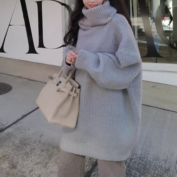 2色展開 ハイカラールーズプルオーバー レディース トップス ニット セーター プルオーバー アウター ミドル丈 長袖 タートルネック ハイカラー ストレート バットスリーブ ヘッジスタイル ルーズ カシミアふっくら 伸縮性 中厚手 きれいめ カジュアル 上品 エレガント キュート 無地 春 秋 冬 10代 20代 通勤 アウトドア ガーデン ショッピング カフェ 韓国 トレンド